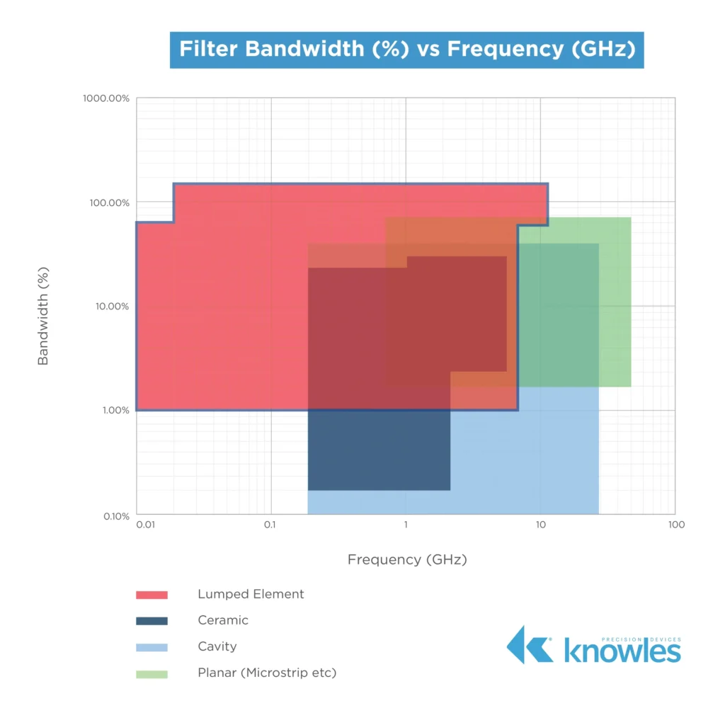 Knowles Precision Devices offers lumped element filter options that cover the frequency and bandwidth range shown in Figure 2 below.